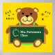 Customize this personalized classroom poster of a teddy bear holding chalkboard with teacher's name and an apple. Background colour can be changed too.