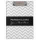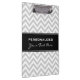 Personalized clipboard | Cool grey chevron pattern. Zig zag stripe design. Personalized banner with monogram initial letter or name. Elegant pattern design. Great for wedding planner and other jobs.