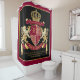 Create your very own aristocratic Coat of Arms, Emblem, Insignia or Family Crest with this beautiful, classic escutcheon or shield design. Crimson red patterns decorate a shield topped with golden crown and flanked by medieval heraldic lion or griffin. A matching top banner holds your custom wedding date / birth date / slogan or battle cry. The shield has space for your monogram initials. Bottom banner carries your family name. There is also space below for your favorite quote, motto or message. Replace the sample text with your own for a personalized gift. A gender neutral design that will work for families, groups, couples or individuals. Makes a wonderful gift for Wedding, Anniversary, Birthday, Retirement, Promotion, Father’s Day, Bachelor Party, Wedding Shower, Graduation, International Heraldry Day, Medieval or Fantasy-themed parties and other special occasions.