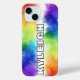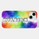 An iPhone case with a rainbow hued colour "explosion", personalized with your name! Fully customizable on your own, or contact MineByDesign for help creating your design vision on a phone case or any Zazzle product!