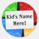 Personalized Colour Squares Kids School Name Classic Round Sticker