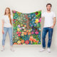 Personalized Colourful Blanket for Kids, Personalized Colourful Floral Mushroom Tree Design Fleece Blanket