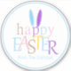 The design features fun and colourful typography of the Easter wish "Happy Easter" along with bunny ears and personalization field.