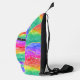 This fabulous sling bag features agate design in rainbow colours with gold veins and glitter. Add your name and initial to personalize.