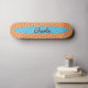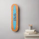 With retro flair and vibrant colours, this cool skateboard features a mid-century modern geometric abstract design of semicircles. Personalize with your name in retro script typography, on the turquoise central section. An eye-catching and individual gift for a skateboarder.
