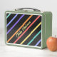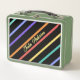 Personalized Colourful Striped Pattern Metal Lunch Box. Customize it with your name for a chic girly unique look.