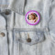 A cute personalized photo, name and age birthday button for a little girl, Background has pink and purple confetti. Add all your info and photo in the personalize area. Cute for friends and family to wear at a birthday party for kids!