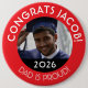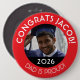 Show your favourite graduate how proud you are by wearing a personalized graduation button! This button is easy to customize with the graduate's name, photo and graduation year. All text and the photo is simple to update to your liking.