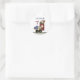 This personalized construction name sticker has a cement truck, a dump truck and a star. They all set over a line with red, green and blue with plaid in same shades at the bottom.
