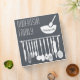 Add a name to personalize this charming cookbook with a chalkboard background and kitchen utensils.