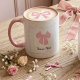 Celebrate elegance with this personalized pink bow coffee mug, designed for lovers of soft, feminine style. This charming piece is part of the trending coquette pink bow mugs aesthetic, featuring a delicate heart frame adorned with a pink bow that adds a sweet and stylish touch. On the other side, you’ll find a matching design with smaller bows and space to add your own message, making it one of the most special custom coquette bow mug options. Whether you're looking for cute pink bow cups or trendy bow mugs, this design perfectly captures that dreamy vibe. Crafted as a cute ceramic mug, it can be personalized with your name or a meaningful note, turning it into one of the most adorable personalized coquette ceramic mug gifts. It’s ideal for anyone who loves cute girly coffee mugs or cute girly ceramic mugs. This mug also makes a cute gift for her, perfect for birthdays, special occasions, or simply treating yourself to something pretty and aesthetic 🎀✨