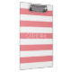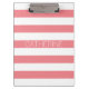 Personalized coral pink and white bold striped modern typography clipboard. Add your own custom name or monogram letters to the clip board. Trendy accessory for wedding party planning, work, job, sports coach, kids party, bachelorette, office, school teacher, nursing etc