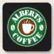 Personalized cork back coffee and drink coaster set. Custom beverage coasters with coffee bean and cup logo. Trendy design for home, office, bar, cafe, coffee shop, bistro, restaurant etc. Fun Birthday gift idea for friends and family.