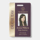 Easily personalize this professional luxury style gold and burgundy employee photo ID badge with your custom details.