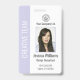 Bring a touch of modern color to your workplace with this pastel purple photo ID badge, designed for designers, artists, and innovative corporate staff. This vertical identification card features a soft lavender side banner that elegantly displays your department name in bold, white lettering. The template is fully customizable, allowing you to easily swap in a professional headshot, company logo, and staff details including ID numbers and expiration dates. With a functional back design featuring a scannable barcode and return address info, this badge combines trendy aesthetics with essential office security.