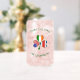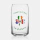 Personalized can glass with a shamrock featuring the flags of Costa Rica, Ireland and United States of America (USA). A different flag is found in each leaf. It reads THREE CULTURES above the shamrock and ONE YOURNAME below. The words are dark green, Celtic style, circular letters. Add your name in the correct place for personalized effect. For a gift, add someone else's name. Great housewarming gift, too. Fun for family reunions.