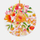 Personalized Couple Names Floral Orange Christmas Ceramic Ornament