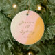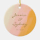 Celebrate your special day with this personalized ceramic ornament featuring a boho chic watercolor design in soft pink and yellow hues. Perfect as a keepsake for newlyweds or as a heartfelt gift, this ornament adds a touch of rustic charm and elegance to any holiday tree or home decor. Customize it with names and a wedding date to create a meaningful memento that captures the joy and beauty of your big day.