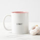 Customize the mug with two names placed on opposite sides, creating a his and hers style coffee mug that feels personal and meaningful. The soft pink or red interior adds a subtle romantic touch while keeping the design clean and modern.