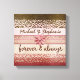Personalized Couples or Wedding with Love Quote canvas prints. Beautiful vintage inspired shabby chic design in brown and pink, with the quote, 'forever and always'...personalize with bride and groom or husband and wife's name for a beautiful keepsake gift. Great for anniversaries. Back side is a deep rustic brown polka dot pattern.