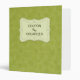 A fun coupon organizer featuring a background pattern of dashed line circles on a subtle distressed lime green background. This binder was designed to be a coupon organizer but all the design elements can be removed from the front and spine and changed to something else. Would also make a great recipe binder, photo album, wedding planner, or anything else you can think of.