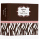 Clip and collect your valuable coupons from retail stores, newspaper ads, and online savings in this cute pink accent, chocolate brown and white zebra print binder features stylish stripe pattern on front and back with fun mod scroll frame and your custom text to the front and spine...