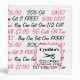 A coupon organizer binder featuring popular coupon phrases in pink an black text covering outside surface. Personalize with your name above scissors illustration inside pink frame on front. Personalize with "If Found" info on back.