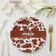 Personalized classic and trendy brown and white cow skin spots texture design birthday party custom year and name tableware. Cow spots animal print