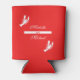 Spice up your engagement, rehearsal dinner, anniversary or other special crawfish boil event with these personalized drink coolers (coozies) featuring white crawfish silhouttes on a bright red background.