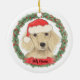Personalized Cream Long Haired Dachshund Christmas Ceramic Ornament