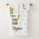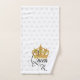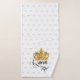 Add a clean and elegant touch to your bathroom with this classy bath towel set. It features a personalized classic design with queen text and golden crown print on discreet little crown pattern background.