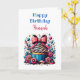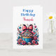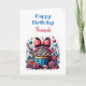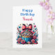 Cute whimsical personalized birthday card for her. Add name in the personalize area. Graphics of a cute cupcake with pink and blue flowers and a bow. Cute for a friend or family member. Inside page is a colouring page.