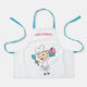 A cute illustration of a girl wearing a chef's hat and holding a cupcake with hearts and turquoise cooking spoon. You can personalize the apron with the name/text you wish to give it a unique touch. The perfect gift for all the littlest foodie girls, cooks, chefs and bakers!