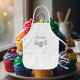 Personalized cupcake baking apron for children. In beige, yellow or white. Funny baker gift for little kids and cupcake lovers. Girlie girl design with elegant script text. Colourful image with pastel colours pink blue green etc. Fun birthday party idea.