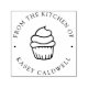 Perfect for labelling your delicious home baked goodies, this personalized stamp features "from the kitchen of" and your name curved around a cupcake illustration.