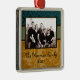 I was impressed by the quality and size of the ornament. Metal framing and design were perfect. Definitely recommend any of the metal framed ornaments. I ordered different ones all of the same quality and personalized professionally. Perfect No pictures as they were all gifts