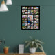 Easily create a personalized photo memories custom color poster or print (shown in black) to display utilizing this easy-to-upload photo collage template with 45 pictures and your custom text as an overlay on the center picture. Showcase your photography or commemorate a special event or milestone or for a meaningful, memorable gift or keepsake. OPTIONS: The sample is shown on the 24x30" Value Paper (Matte) poster--other sizes and paper quality or canvas are available on the ordering page. ASSISTANCE: For help with design modification or personalization, color change, resizing, transferring the design to another product or if you would like coordinating items, contact the designer BEFORE ORDERING via the Zazzle Chat MESSAGE tab below or email makeitaboutyoustore@gmail.com.