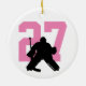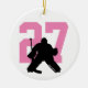 Personalized Custom Girls Hockey Goalie Player Number pink ornament