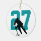 Personalized Custom Hockey Player Number Teal Ceramic Ornament