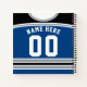 This design is an ice hockey / lacrosse style jersey in blue with silver and black stripes and trim.