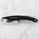 Modern elegant and understated monogram initial and custom name on a folding wine bottle opener with corkscrew and cutter with a classic minimal, professional-looking sans-serif font for a simple, modern and timeless look.