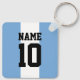 Personalized custom name and number or monogram with the flag of Argentina Soccer keychain.