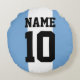 Personalized custom name and number or monogram with the flag of Argentina Soccer round Throw Pillow.