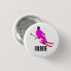 Personalized Custom Name Retro Pink Skier Girl 1 Inch Round Button