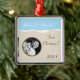 I was impressed by the quality and size of the ornament. Metal framing and design were perfect. Definitely recommend any of the metal framed ornaments. I ordered different ones all of the same quality and personalized professionally. Perfect No pictures as they were all gifts