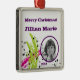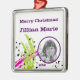 I was impressed by the quality and size of the ornament. Metal framing and design were perfect. Definitely recommend any of the metal framed ornaments. I ordered different ones all of the same quality and personalized professionally. Perfect No pictures as they were all gifts