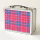 Personalized Custom Pink Fuchsia Plaid Preppy Metal Lunch Box