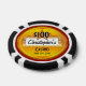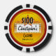 Add your name to this fun and creative poker chip, great for games at home or for corporate charity events. Gold and red background with stars and your choice of dollar amount denomination. Example is for "Christopher's Casino, Your City and Your State". Make this chip for $100, $50, $25, $10, $5, $1 or any other amount. Include your city, or a famous gambling city like Las Vegas, NV, Atlantic City or a Cruise Ship casino. 100% totally customizable personalized for your gambling night or poker tournament, just like a real casino quality professionally printed keepsake.