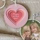 This customizable keychain features a faux 3D effect heart graphic with your custom text in script on the front and your favorite photo on the back.