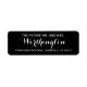 This simple but elegant return address labels says The Future Mr. and Mrs with the name is a calligraphy style font. The background is black and the font is white. Give your engagement, save the date, wedding or thank you cards a personal touch with these address labels.